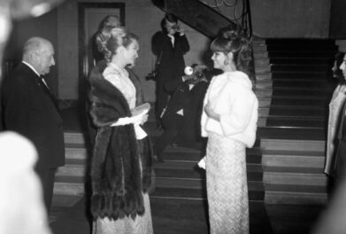 Claudia Cardinale en compagnie de la Princesse Grace au Sporting d’Hiver lors de l’avant-première du western de Richard Brooks, Les Professionnels.