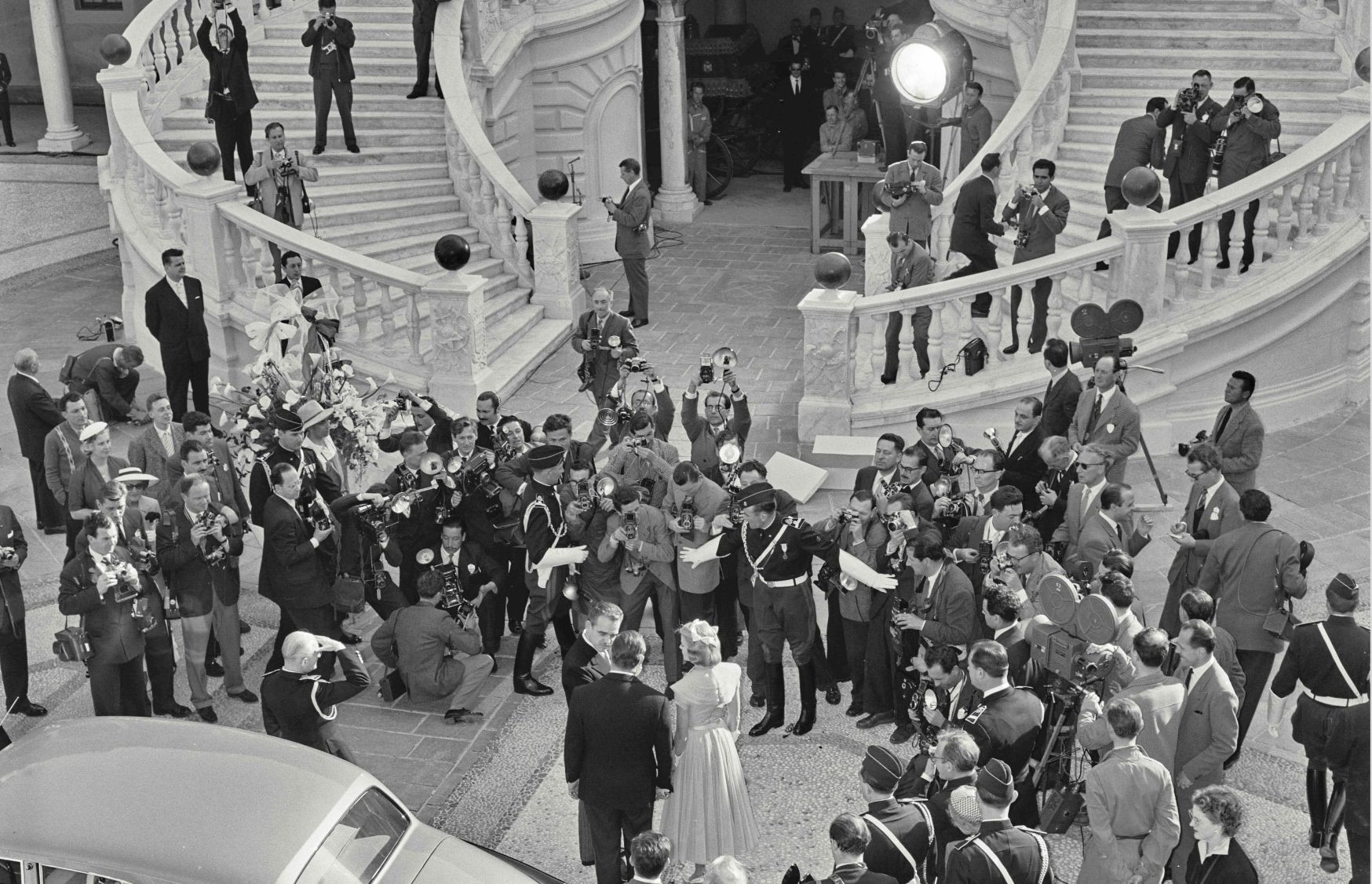 À travers photographies, images animées, objets, robes, accessoires, cadeaux et documents personnels, le parcours d’exposition plongera le visiteur dans une semaine de festivités variées, qui, de l’accueil de Grace Kelly le 12 avril, au départ du couple princier en voyage de noces le 19, a marqué les esprits et changé le destin de Monaco. Au croisement de la tradition monarchique européenne et d’une promotion à l’américaine, ce « mariage du siècle » a connu un retentissement majeur, notamment grâce à sa retransmission télévisée en direct et un film en cinémascope couleur, qui sera redonné pour la première fois, en version restaurée, dans la cour d’honneur du Palais et dont le Cabinet de curiosités de l’Institut expliquera la conception et les retombées médiatiques.