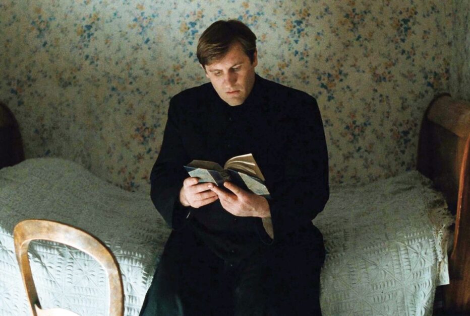 Un jeune curé de campagne du pays d’Artois, l’abbé Donissan, ploie sous le poids des péchés du monde. Il est fragile et angoissé. Il a recours à la mortification. Son supérieur, le doyen Menou-Segrais, essaie de le raisonner et de tempérer son zèle qu’il trouve quelque peu démesuré. Donissan, entre autres missions impossibles, s’est imposé celle de sauver l’âme d’une paroissienne dévoyée, Mouchette.