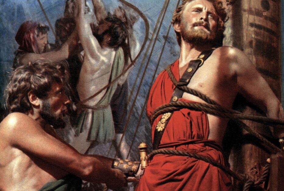 Réalisation : Mario Camerini. Scénario : Franco Brusati, M. Camerini, Ennio De Concini, Hugh Gray, Ben Hecht Ivo Perilli, Irwin Shaw d’après L’Odyssée d’Homère. Avec : Kirk Douglas (Ulysse), Silvana Mangano (Pénélope et Circé), Anthony Quinn (Antinous), Franco Interlenghi (Télémaque), Rossana Podesta (Nausicaa), Jacques Dumesnil (Alkinos).