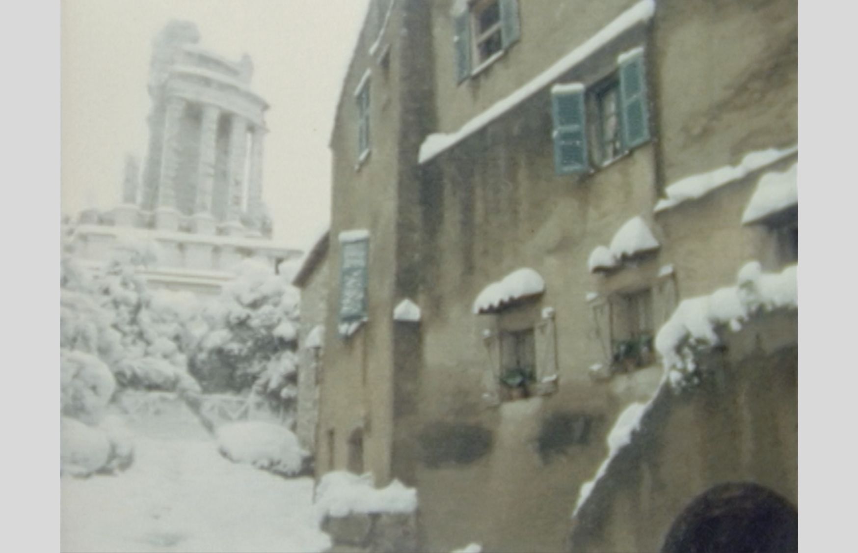 Le 14 janvier 1963, la Côte d’azur se réveille sous un épais manteau de neige. L’événement est assez inédit pour que les photographes et cinéastes amateurs décident d’en garder le souvenir. Des panneaux de signalisation routière permettent de se repérer, le paysage étant devenu méconnaissable. Plus certainement, le trophée d’Auguste atteste de la localisation turbiasque des premières images du film. Le toit de l’hôtel Splendid, alors tenu par la famille Glibert, parents du déposant, offre de rares vues panoramiques sur Beausoleil, la Tête de Chien et les contreforts du Mont Agel. Quelques brefs plans de la rue Bellevue et de l’avenue de Roqueville, confirment ensuite que Monaco n’a pas été épargné par la vague de froid.